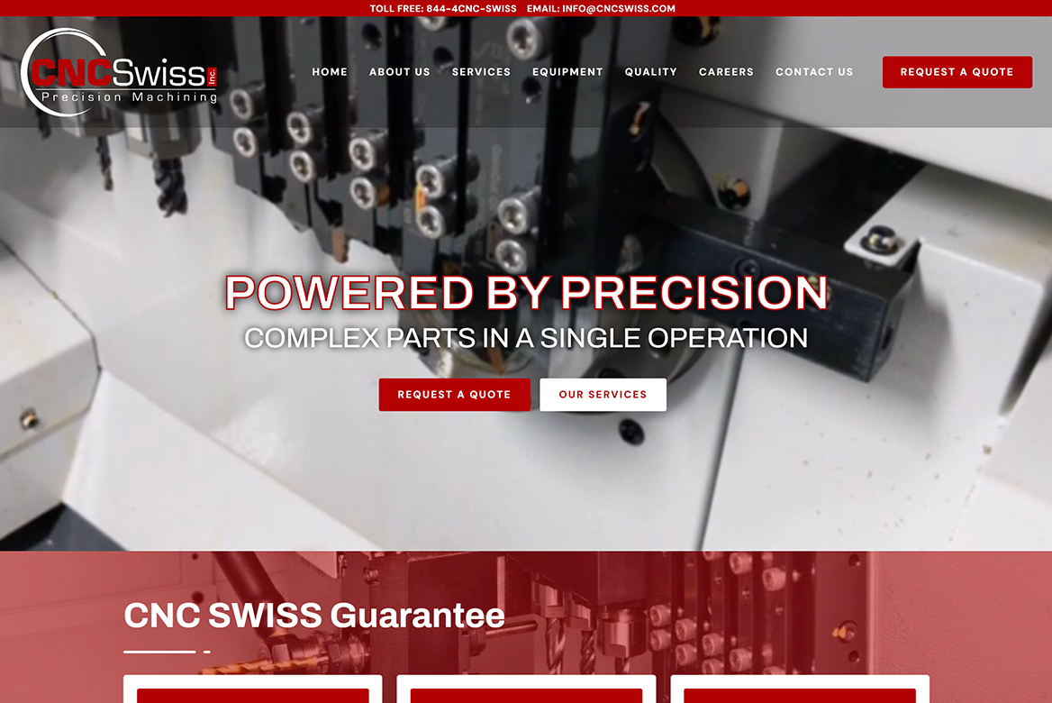 MFG Empire partnered with CNC Swiss to build a digital foundation designed specifically for growth within the manufacturing sector. We implemented a focused manufacturing website design strategy that clearly communicated their Swiss machining capabilities, technical expertise, and production strengths. The new structure emphasized clarity for engineers and buyers while also aligning with search engine best practices.